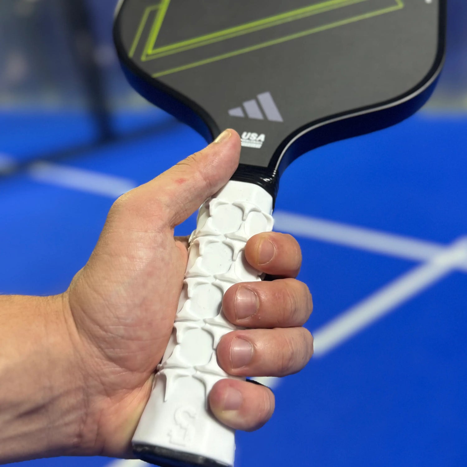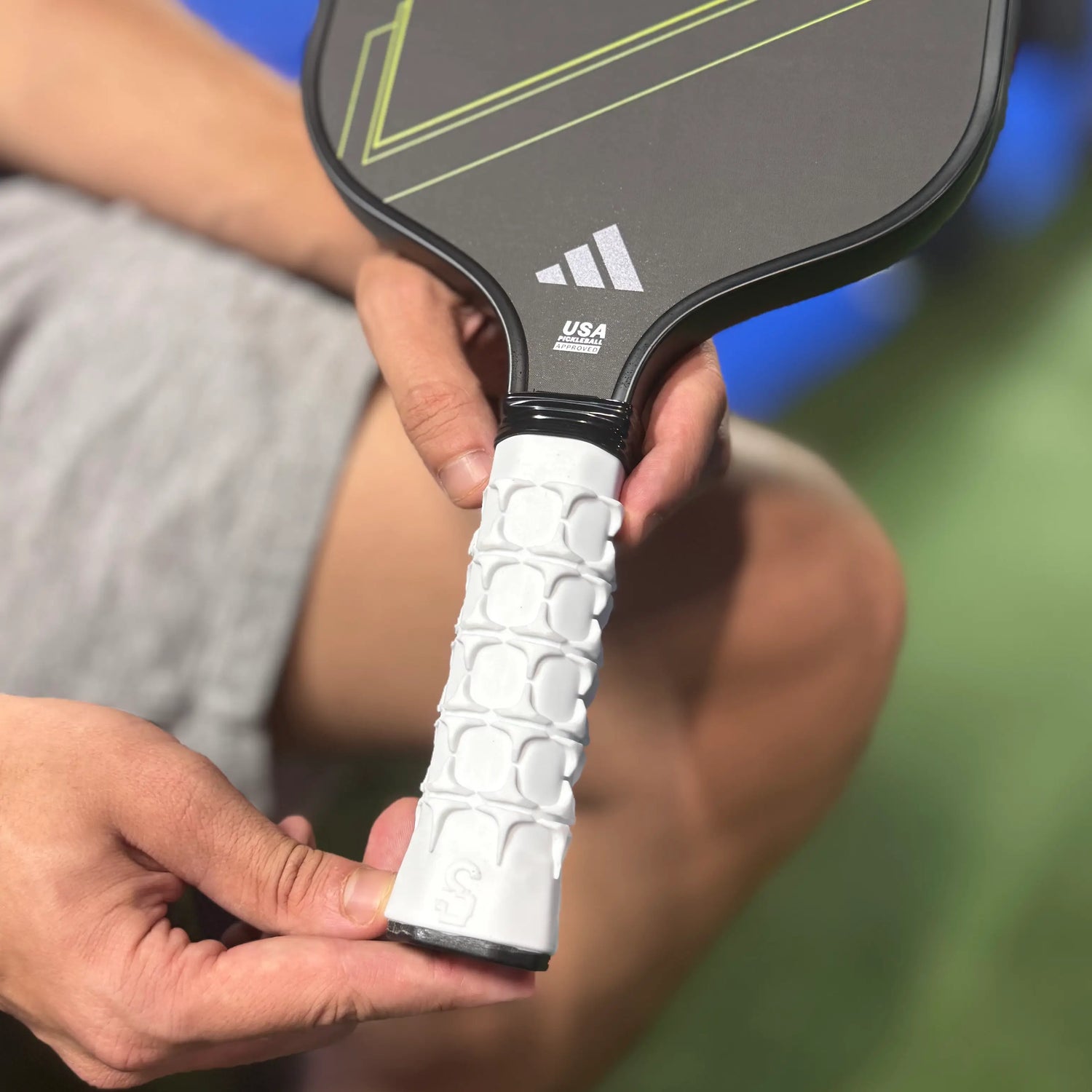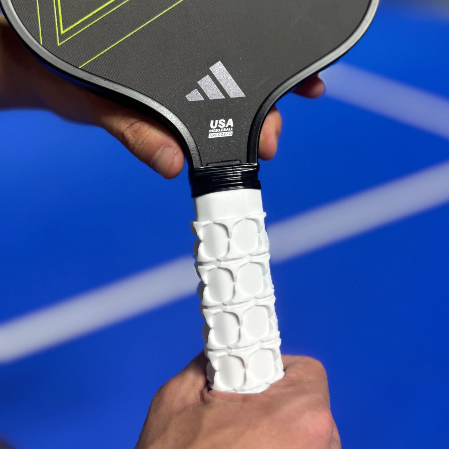 Muchos jugadores se preguntan si pueden usar Set Control™ con su grip habitual. La respuesta es sí, absolutamente. Está diseñado para que puedas añadir un grip por encima, mejorando su adherencia sin perder la firmeza y estabilidad de su superficie con relieve.